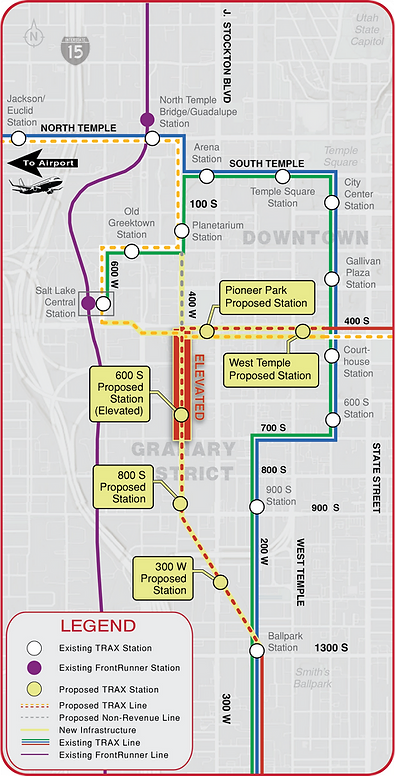 Proposed Light Rail Improvements in the TechLink TRAX Study Include Enhancements to Existing Lines and a New Line From the Airport to the University of Utah Research Park