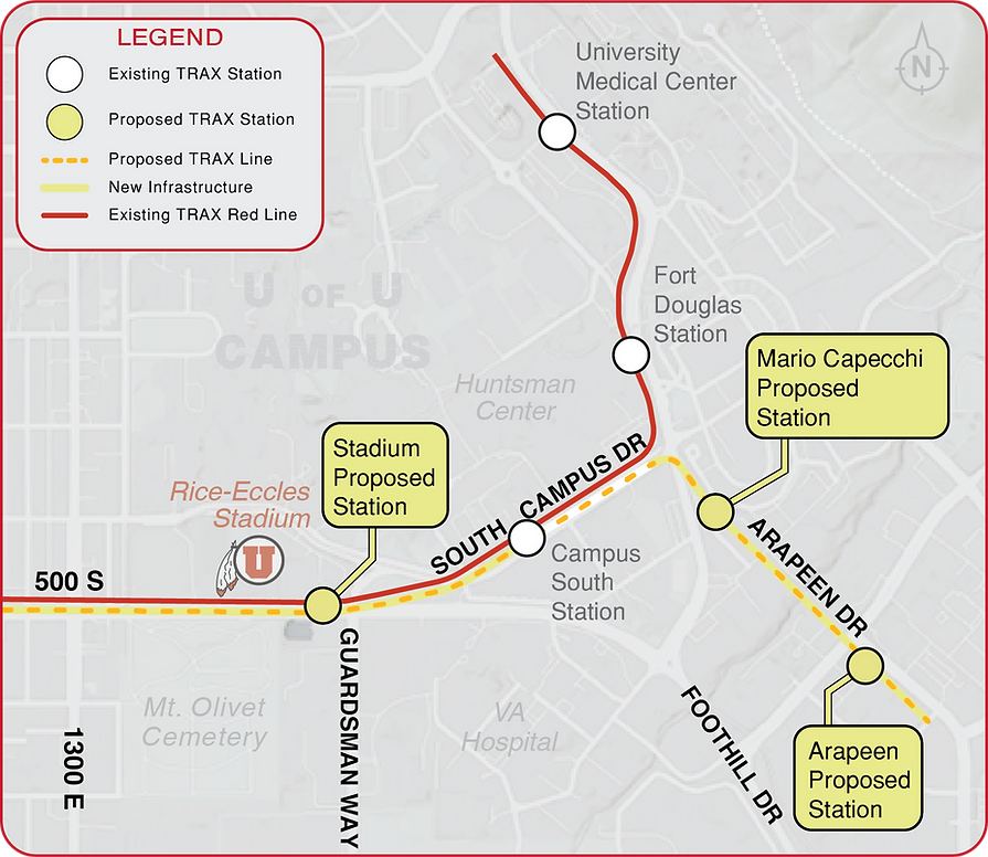 TechLink and other TRAX projects are part of UTA Moves 2050, the multimodal long-range transit plan released by the agency March 14, 2024. The TechLink TRAX Study, a collaborative effort led by UTA in partnership with Salt Lake City, the Redevelopment Agency of Salt Lake City, the University of Utah, Wasatch Front Regional Council and Utah Department of Transportation (UDOT), builds upon findings and data from previous studies and plans in the Salt Lake area, including the UTA Downtown Salt Lake City Rail Feasibility Study, the Future of Light Rail Study and the Research Park Strategic Vision.